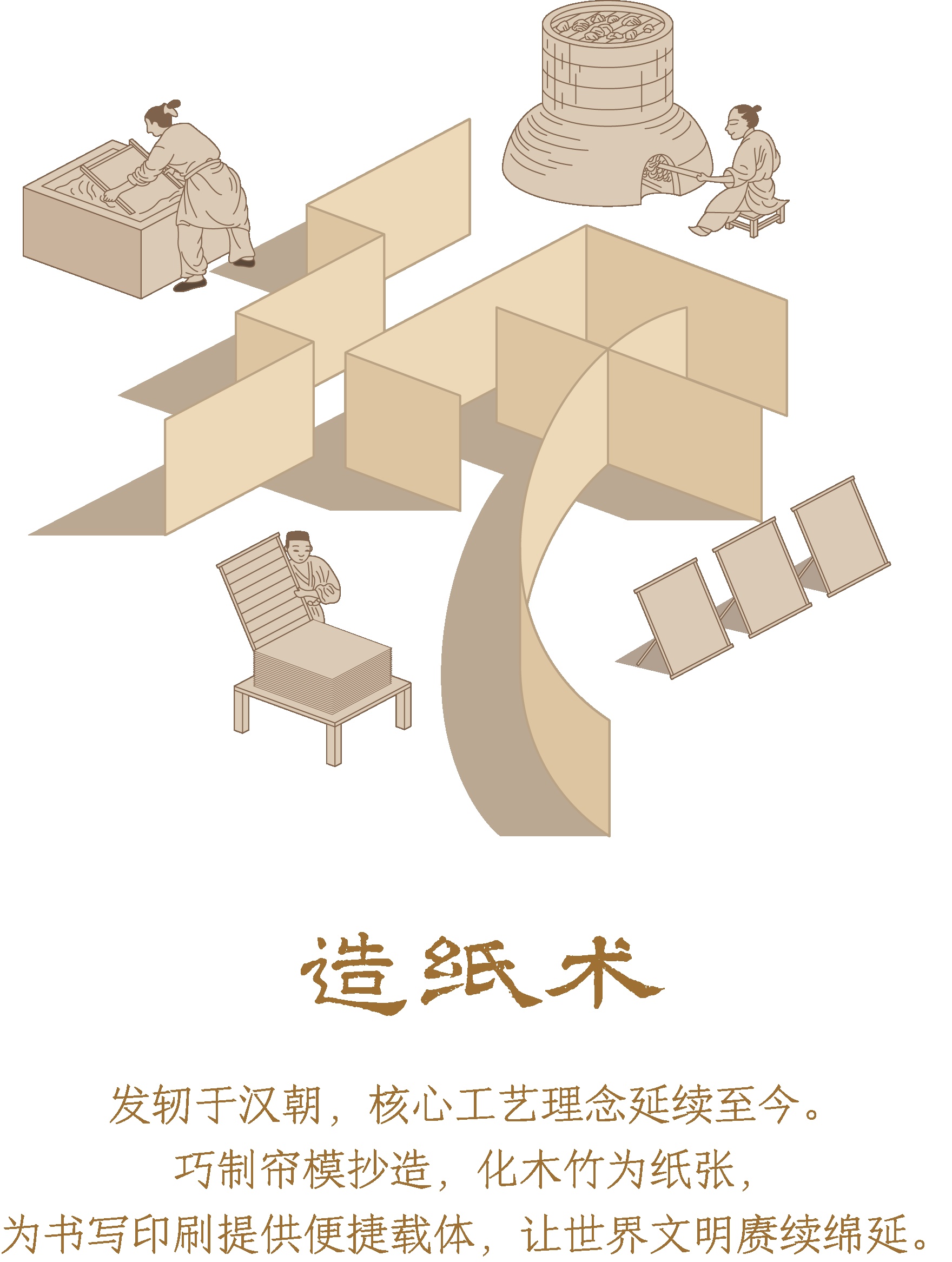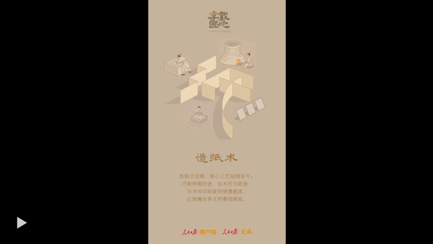 取原材于自然,精技艺于百代。创人之所未有,泽被五洲四海——造纸术,这项中国古人“顺天造物”智慧孕育出的伟大发明,从最朴实的材料中造就便于文字书写的纸张,让浩瀚的中华文明传承千年,绵延不绝。这一东方智慧跨越山海,惠及世界,至今仍深深嵌入人们的日常生活,影响着世界文明的发展。