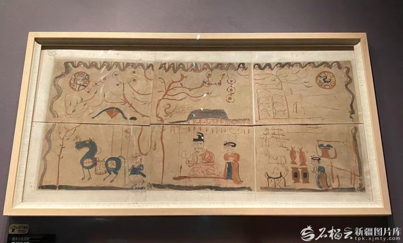 新疆博物馆陈列的《墓主人生活图》。石榴云/新疆日报记者 赵梅摄