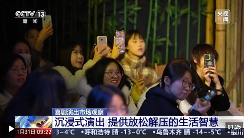 “笑声”不仅承载着喜剧作品中的各种“梗”,同时也承载着对喜剧新的需求。“演艺新空间”则让喜剧不止于“舞台”,沉浸式体验场景、互动参与环节也让观众完成由“观演者”到“参演者”的转变。
