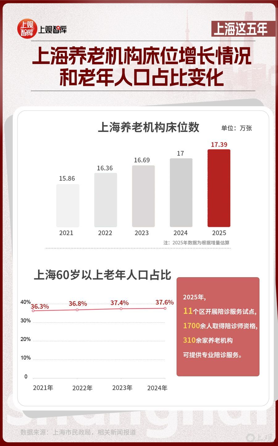 截至2025年3月底,上海市60岁及以上户籍老年人口达到518.7万人,占户籍总人口的36.2%。上海相关健康指标持续优化,人均期望寿命有望超过84岁,保持发达国家水平。
