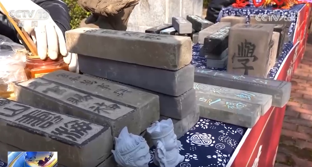 集市上的砖雕展示区围拢了不少好奇的群众。砖雕艺人手握特制的刻刀,在一块湿润的青砖上刀锋流转、深浅自如,一匹线条流畅、昂首向前的骏马逐渐显现出灵动的轮廓。