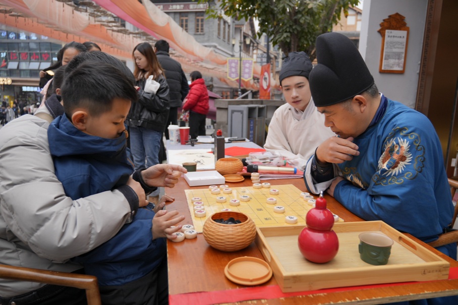十八梯景区内npc与游客进行下象棋互动(央广网发 周长江 摄)