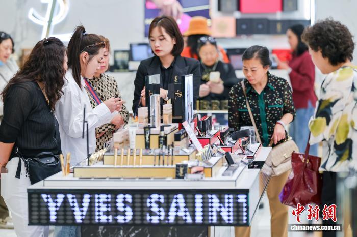 1月18日,顾客在cdf海口国际免税城选购化妆品。 中新网记者 骆云飞 摄