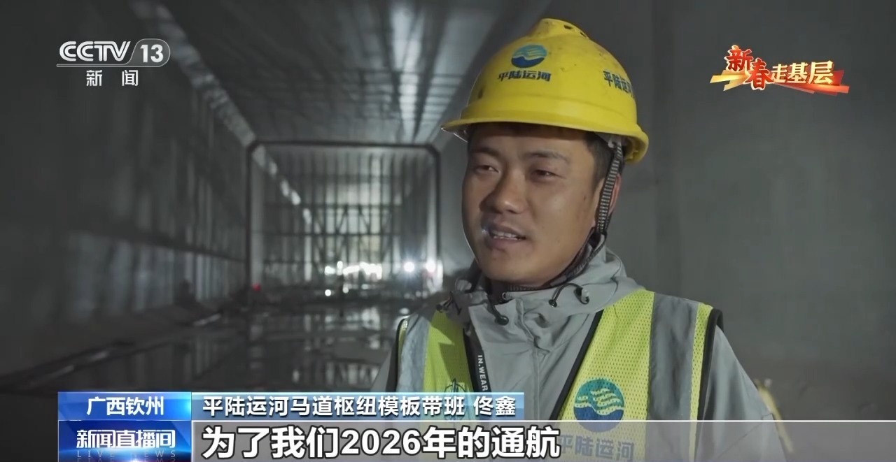 西部陆海新通道骨干工程——平陆运河,是新中国成立以来建设的第一条通江达海的运河工程,计划今年底主体建成通航。在位于广西钦州的平陆运河控制性工程——马道枢纽的建设现场,工程已进入关键而精细的内部整合阶段,工人们正在地下60米深的地方进行宽缝回填施工,它就像一场不容有失的“精微手术”。钢筋工李华峰和他的工友们正以毫米级的严谨,为这座超级工程“焊接骨骼”,在日复一日地坚守中,一寸寸推动“骨骼生长”。