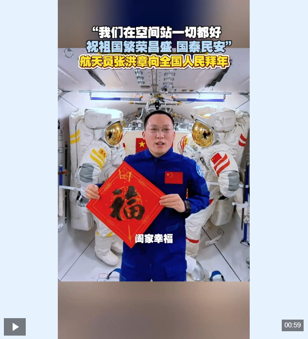 在中国空间站向全国人民送上新春祝福