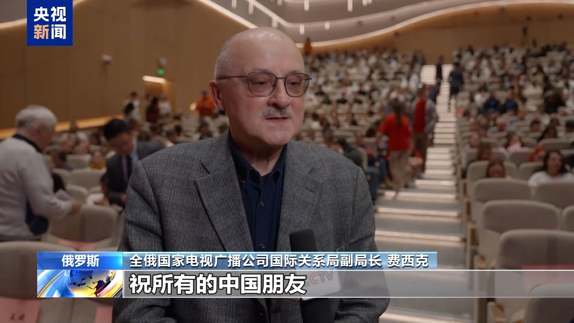 全俄国家电视广播公司国际关系局副局长 费西克:祝所有的中国朋友、祝中央广播电视总台的同事、祝中国人民农历新年快乐,马年快乐。祝所有人安康幸福,永远马到成功。