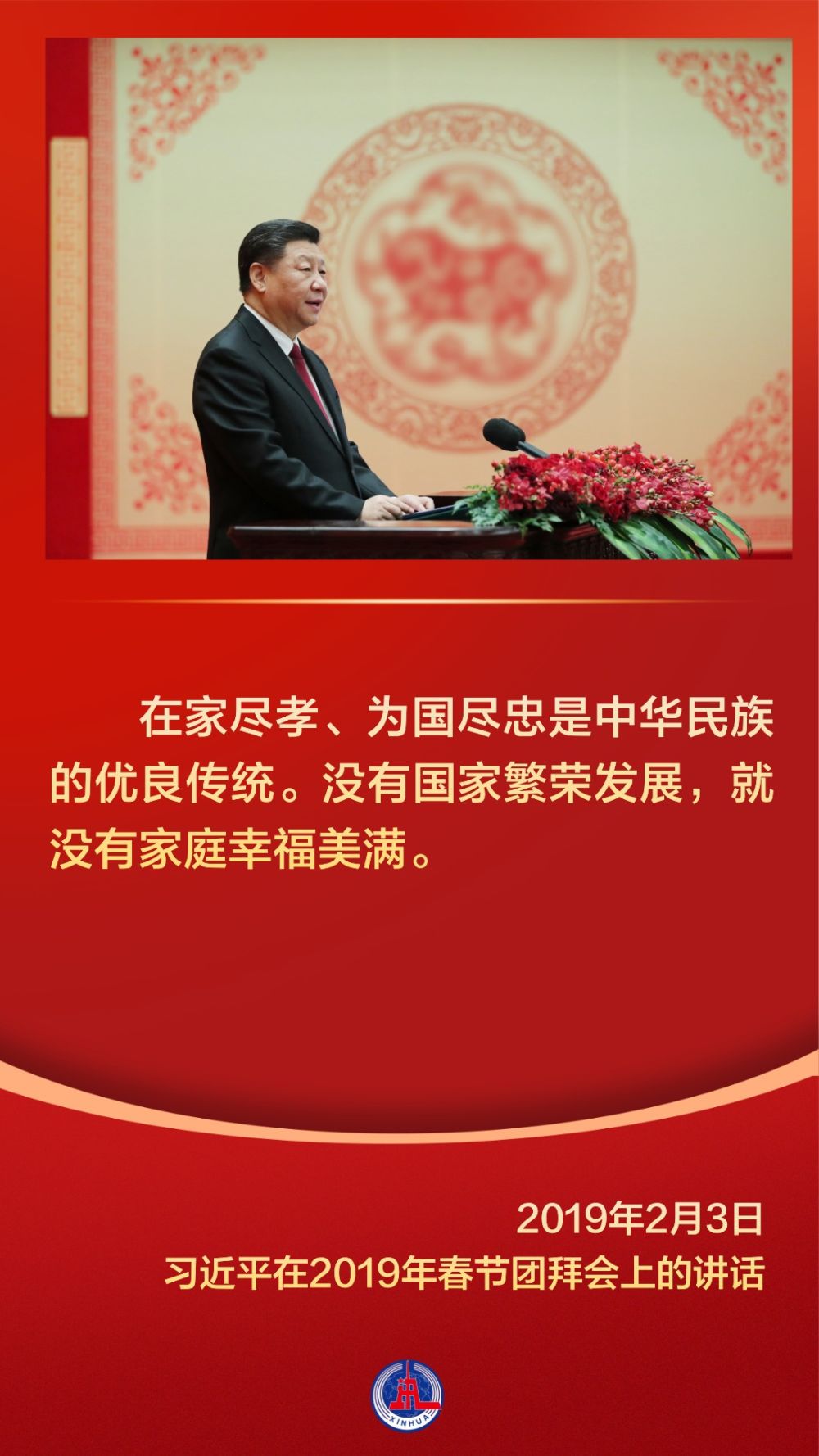 家是最小国,国是千万家。中华民族历来重真情、尚大义,在春节这样一个万家团圆的美好时刻,习近平总书记以家国之情凝聚起亿万人民家国一心的奋进力量。
