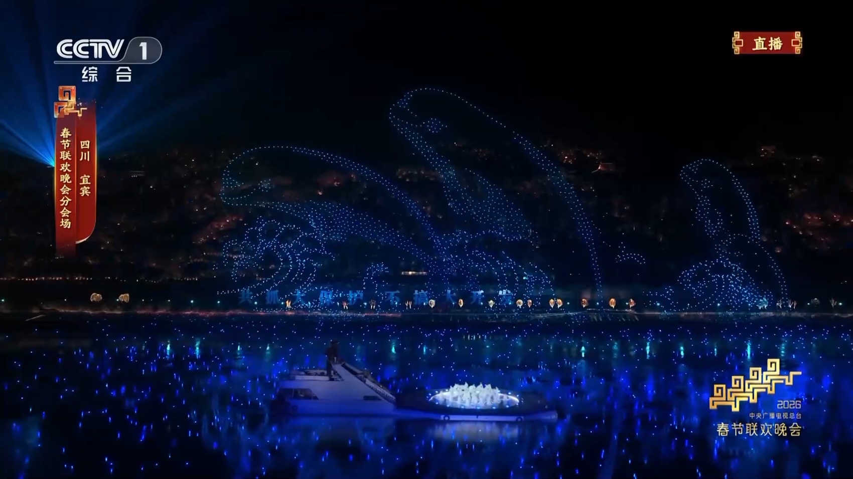 央视春节联欢晚会宜宾分会场,两个画面让人记忆深刻:5000架包括“四川造”在内的无人机次第升空,幻化出长江唯一淡水鲸豚——江豚的图案;有着“宜宾元素”的银河通用机器人亮相荧屏,向全国观众送上马年祝福。
