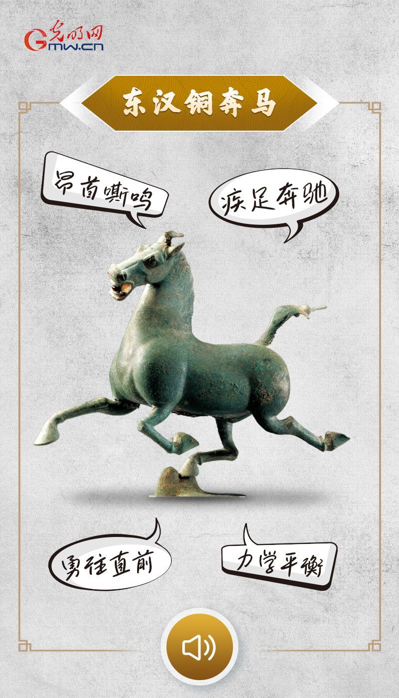 “或许大家更熟悉我的另一个名字——马踏飞燕。在我所生活的汉代,匠人将当时人们对‘天马’的想象、对良骏的观察、对速度的理解和对平衡的把握熔铸于一炉,塑造了我永不止息、昂然向前的精神气韵,即便在千百年后,仍能彰显汉家雄风。听说以我为原型打造的玩偶,这几年很受欢迎,我也希望自己可以持续为人们提供精神力量和情绪价值!”