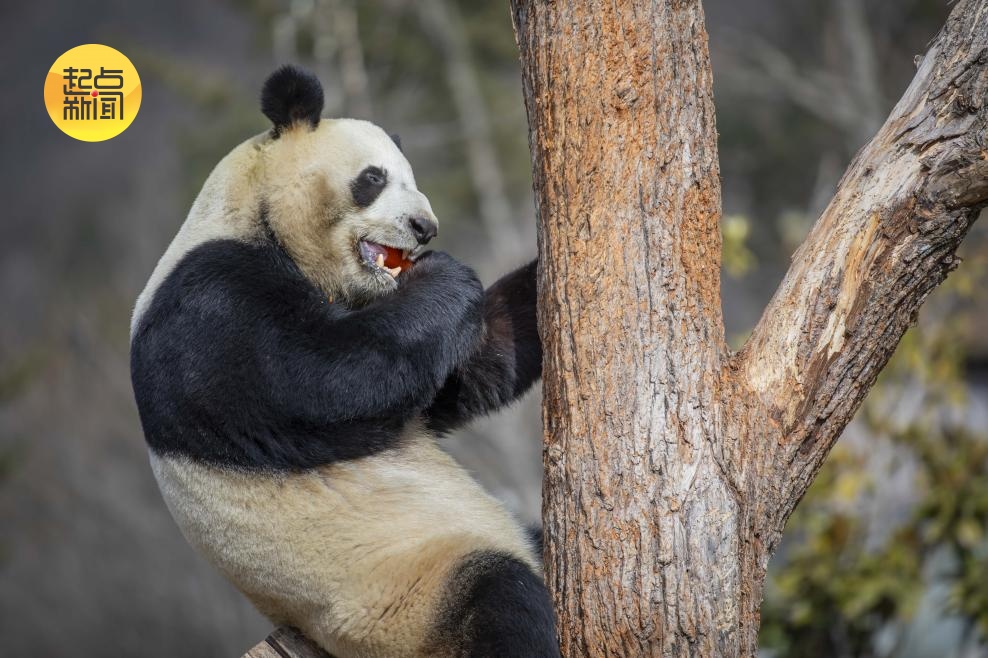 为了丰富圈养大熊猫的日常生活,促进身心健康,饲养员还要想方设法给它们“健身”,把胡萝卜、苹果等零食放置在高低不同的树杈上,引导大熊猫爬树取食。“这样做是模拟大熊猫野外生活的环境,鼓励它们展现自然行为,同时也能锻炼它们的后肢力量、攀爬能力和身体协调性。”杨丽笑称,让“国宝”们吃得开心、玩得健康,活力满满过新春。