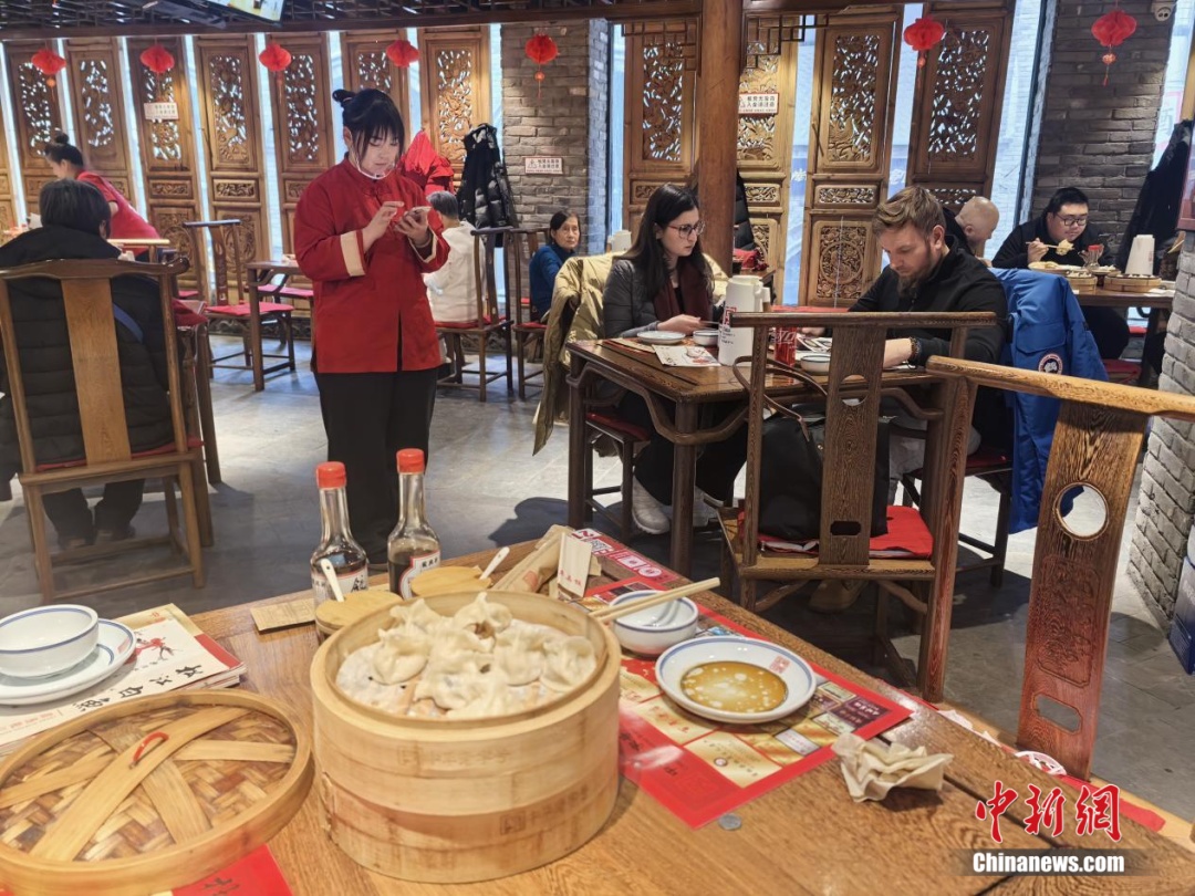 外国食客也在品尝饺子里的“彩蛋”。 石洪宇 摄