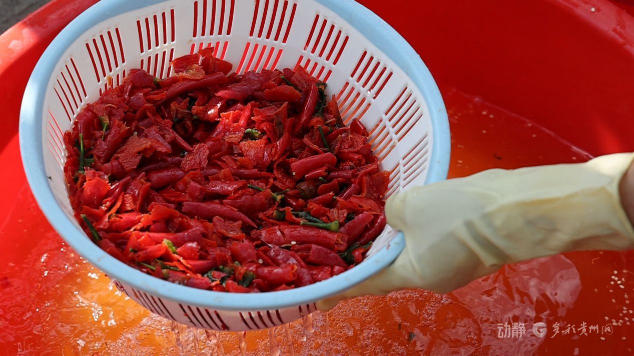 贵州省农科院辣椒研究所“黔辣”育种团队成员刘崇政正在分离采收的辣椒种