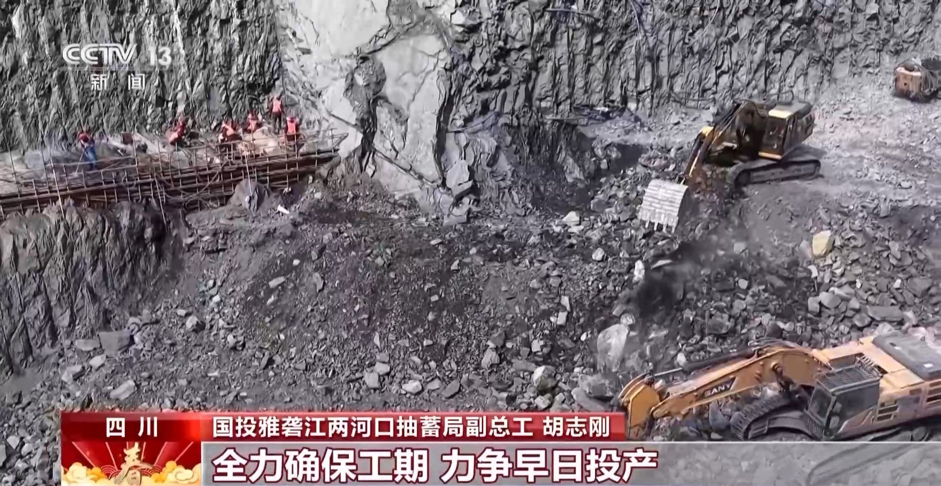 国投雅砻江两河口抽蓄局副总工 胡志刚:作为混蓄项目的下水库,牙根一级水库也在春节期间迎来新突破,启动了大坝混凝土浇筑。1000多名建设者一直坚守一线,全力确保工期,力争早日投产,为大众提供稳定的清洁绿电。