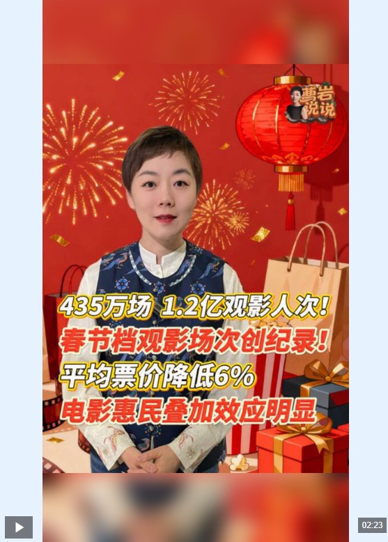 今年春节档观影总场次达435万场,刷新中国影史春节档总场次纪录。这个春节档涵盖《飞驰人生3》《惊蛰无声》《镖人》等多部国产大片,满足不同地域、全年龄层观众的差异化需求,让“春节看电影”成为全民新年俗。