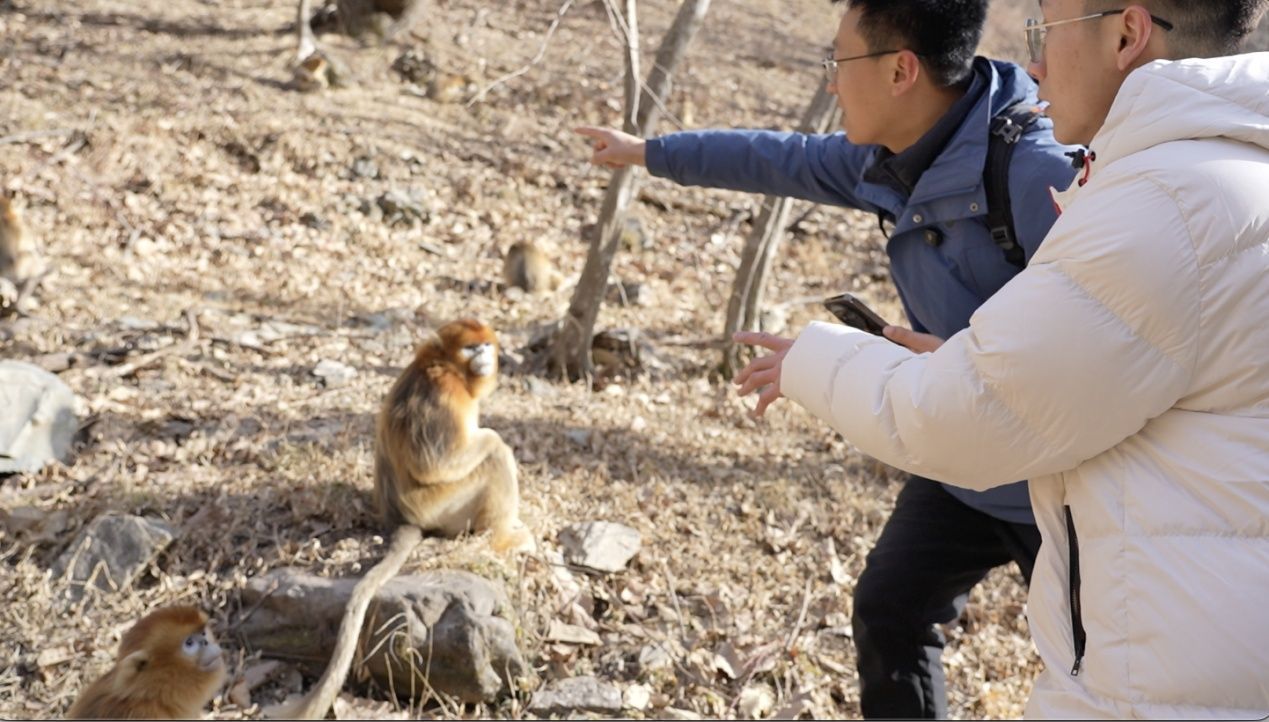 监测川金丝猴的成长状况与生存环境,是护林员巡山期间的一项重点工作。冬季,猴群往往会向秦岭深处迁徙觅食,遇见它们的概率会小很多。正当我们以为会扑空时,惊喜悄然而至。