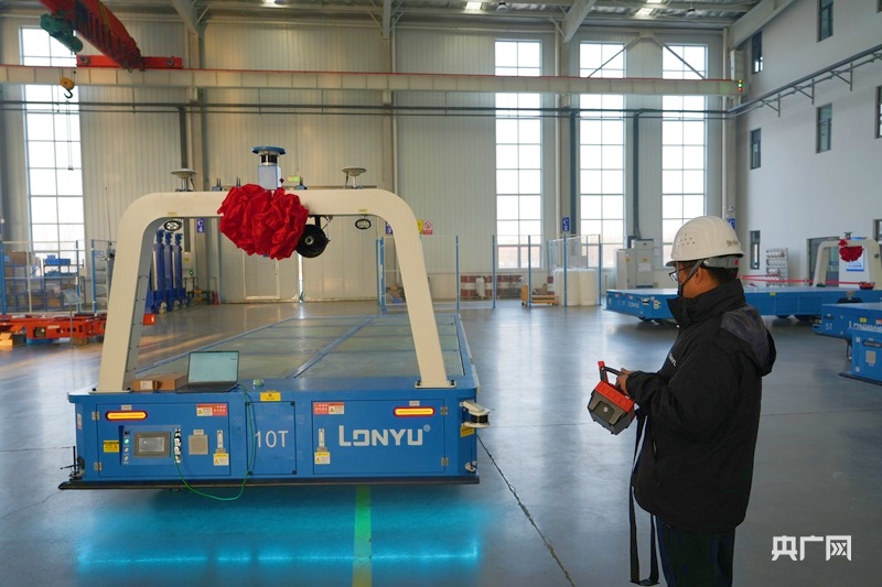 软件工程师正在操作测试无人重载运输车(央广网记者 周思杨 摄)