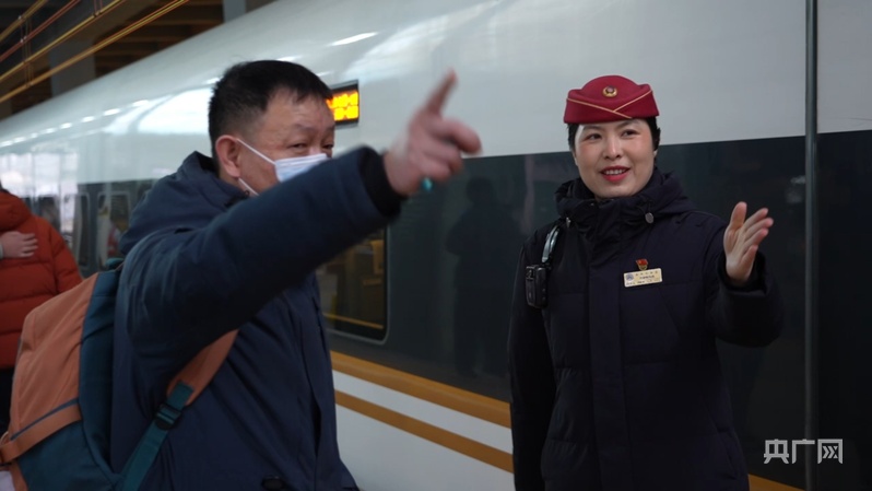 刘新新在解答乘客的问询(央广网记者 韩雨晨 摄)