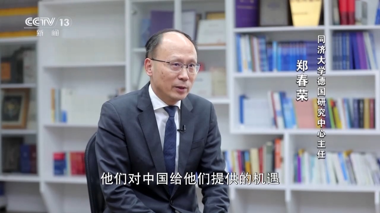 同济大学德国研究中心主任 郑春荣:中国的企业因为创新水平高、速度快,迭代也非常快,而且中国市场庞大,有很多的应用场景给德国企业提供了很多的机会,德企认识到如果想要赶上技术发展的潮流,如果希望能够在国际市场上,在这样技术的发展背景下,继续占领市场的份额,就必须和中国进行合作。