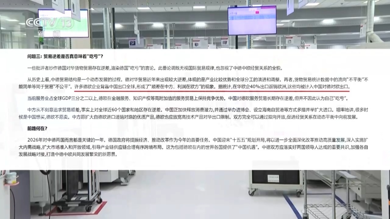 中国国际经济交流中心美欧研究部副部长、研究员 张茉楠:我觉得这是一个非常大的变化,双方在处理分歧和矛盾的时候,我们不回避、不遮掩,而是把我们的分歧放在台面上。我觉得中国与德国作为全球第二大和第三大经济体,我们能够正视矛盾,并基于矛盾来化解矛盾,我觉得它能够带来很好的示范效应。