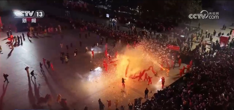 陕西安康:烧火龙打铁花 民俗活动闹元宵