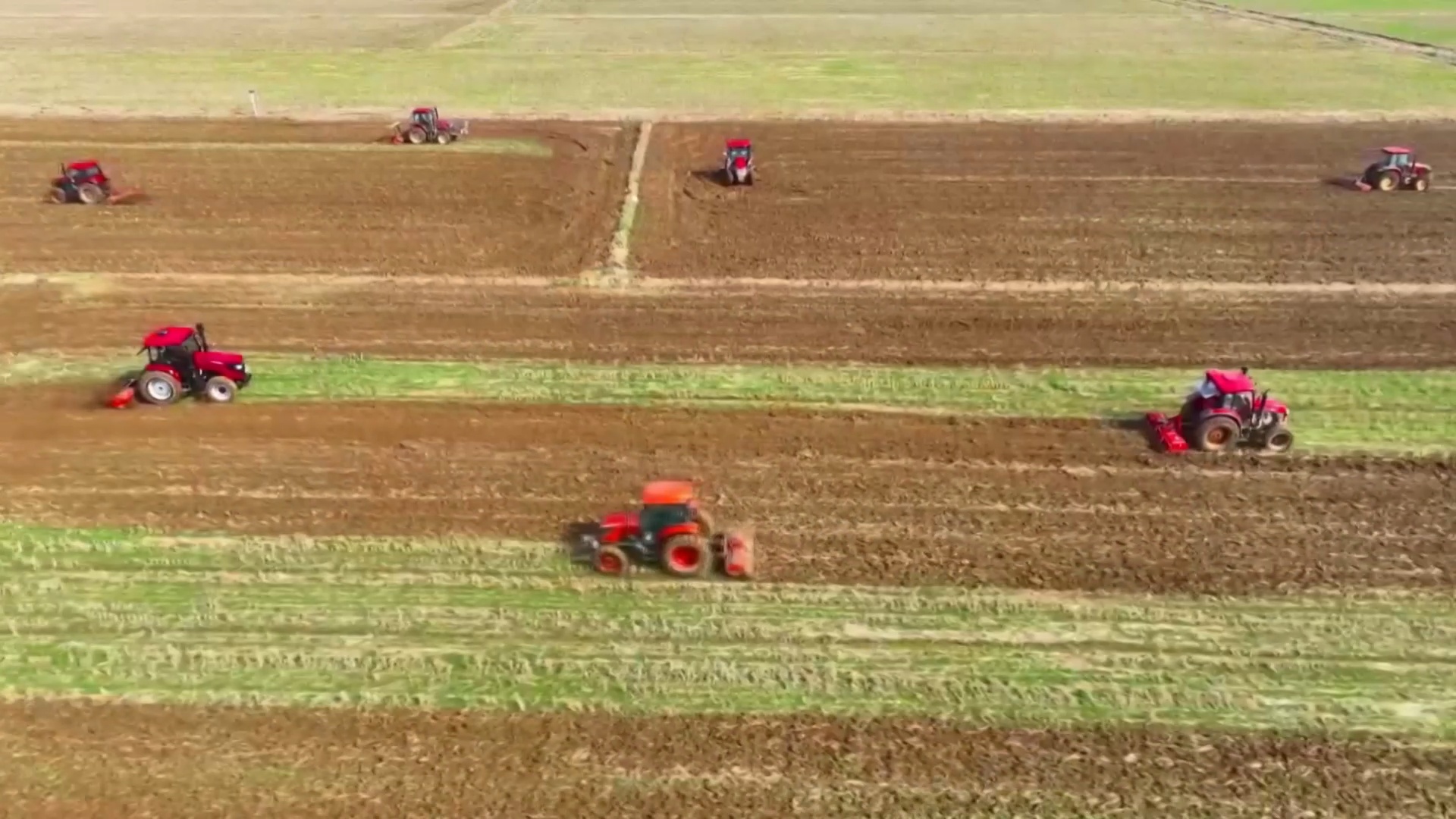 大田农社中,无人农机自行下地耕作,方向盘自动转动,耕作深度精准可控,误差不超过两公分,十分钟就能完成一亩地的作业。