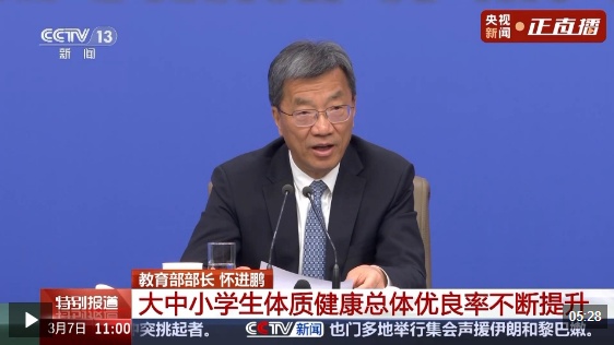 怀进鹏介绍,“课间15分钟”以及“每天体育2小时”已在所有省份部署推行。据国家权威部门监测显示,全国大中小学生体质健康总体优良率不断提升,学生总体近视率实现“四连降”。
