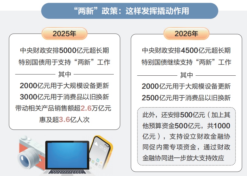 支持建设强大国内市场,是2026年财政政策一大发力点。更加精准、有力的财政政策工具,持续推动消费与投资协同发力、良性互动,助力畅通经济循环,激发增长动力。
