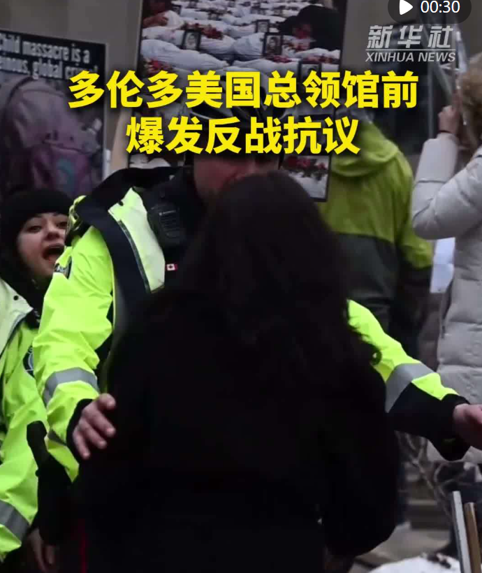 同一天,数百名抗议者在位于加拿大多伦多的美国驻多伦多总领馆前举行名为“反对非正义战争”的集会,抗议美国对伊朗发动军事打击,要求美以政府停止针对伊朗的战争行为。