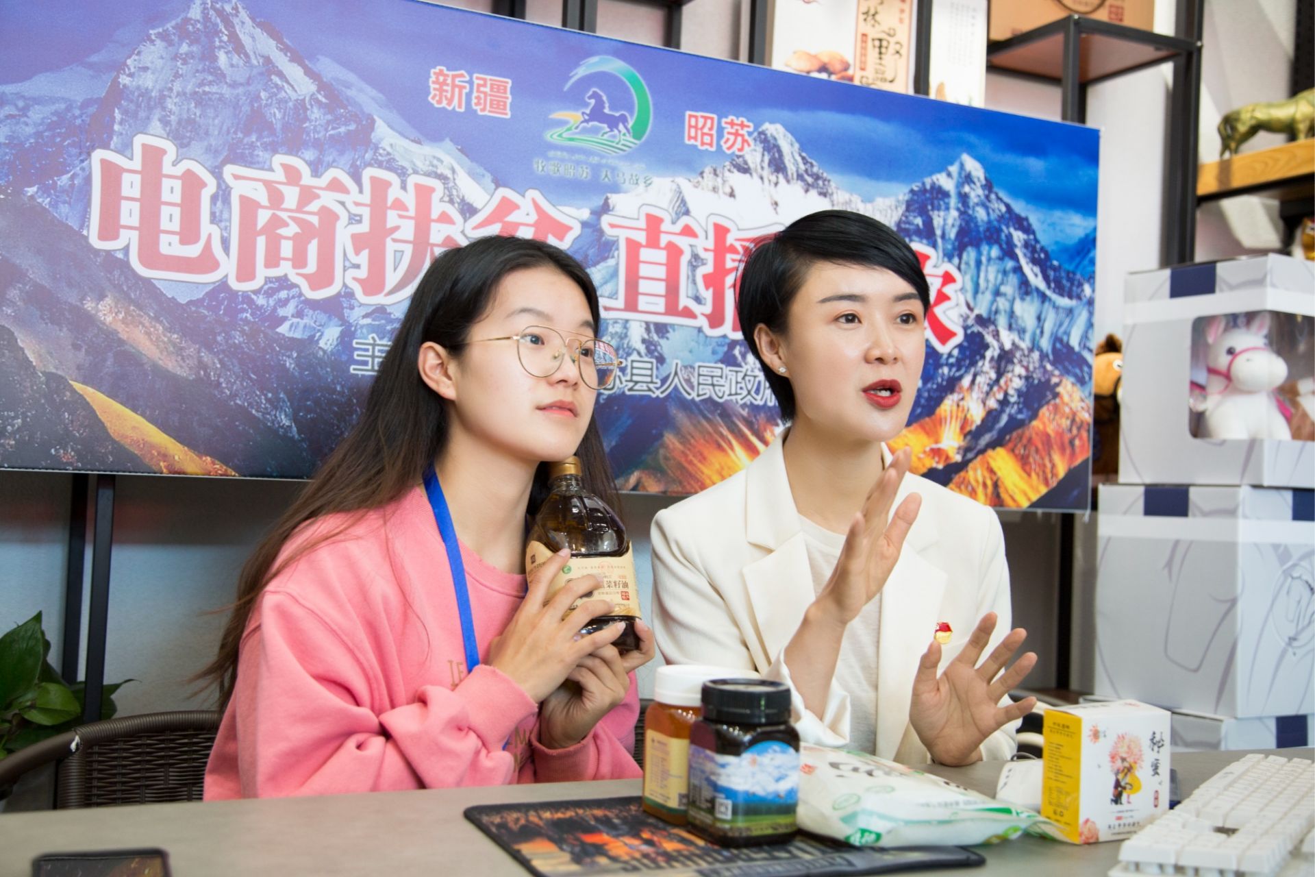 直播中的贺娇龙(右1)(新疆昭苏县委宣传部供图 央广网发)