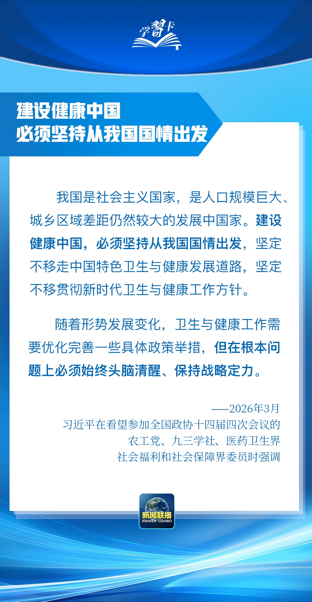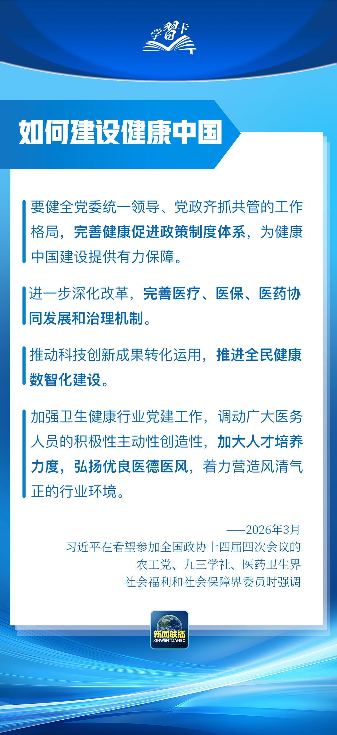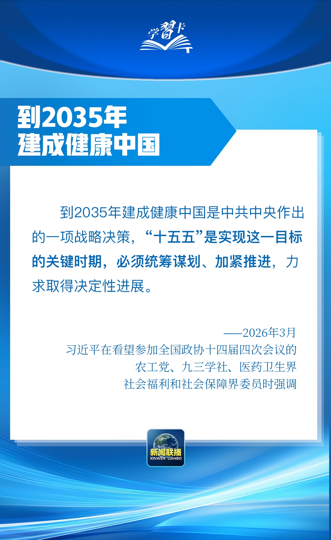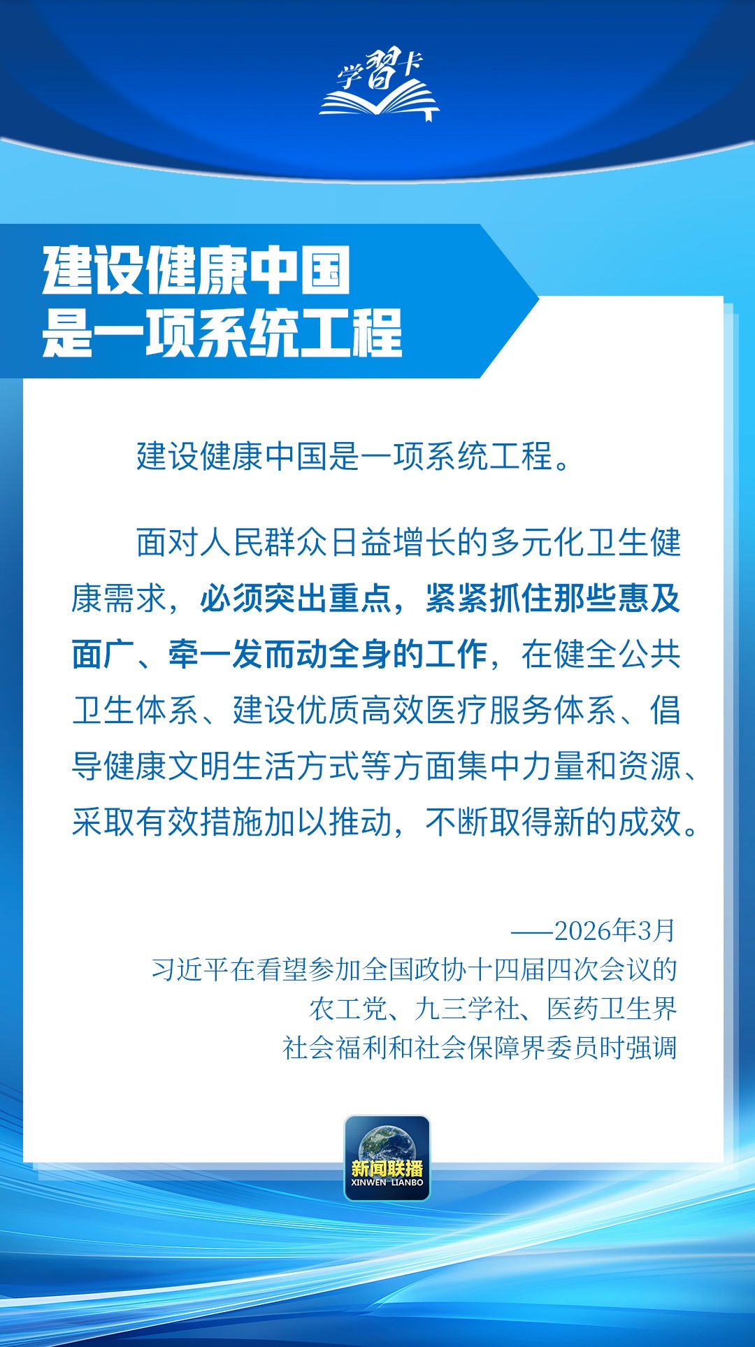 总书记在重要讲话中强调,坚定不移走中国特色卫生与健康发展道路,推动“十五五”时期健康中国建设取得决定性进展。