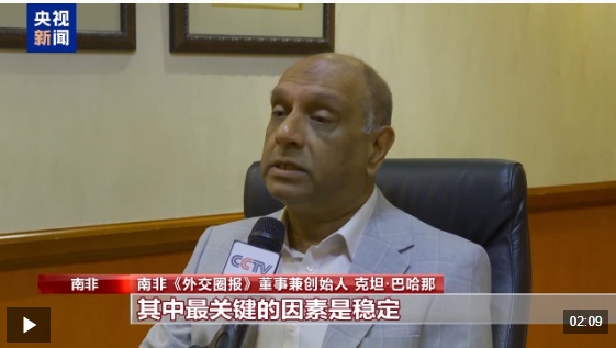 南非《外交圈报》董事兼创始人 克坦·巴哈那:中国已经找到了正确的发展模式,这种模式包括共同发展、以人民为中心的治理以及包容性增长。其中最关键的因素是稳定,包括政治稳定、社会稳定和经济稳定。当一个国家拥有稳定的环境,就能够促进创新,人们可以进行尝试、探索新的方式,寻找新的发展路径。