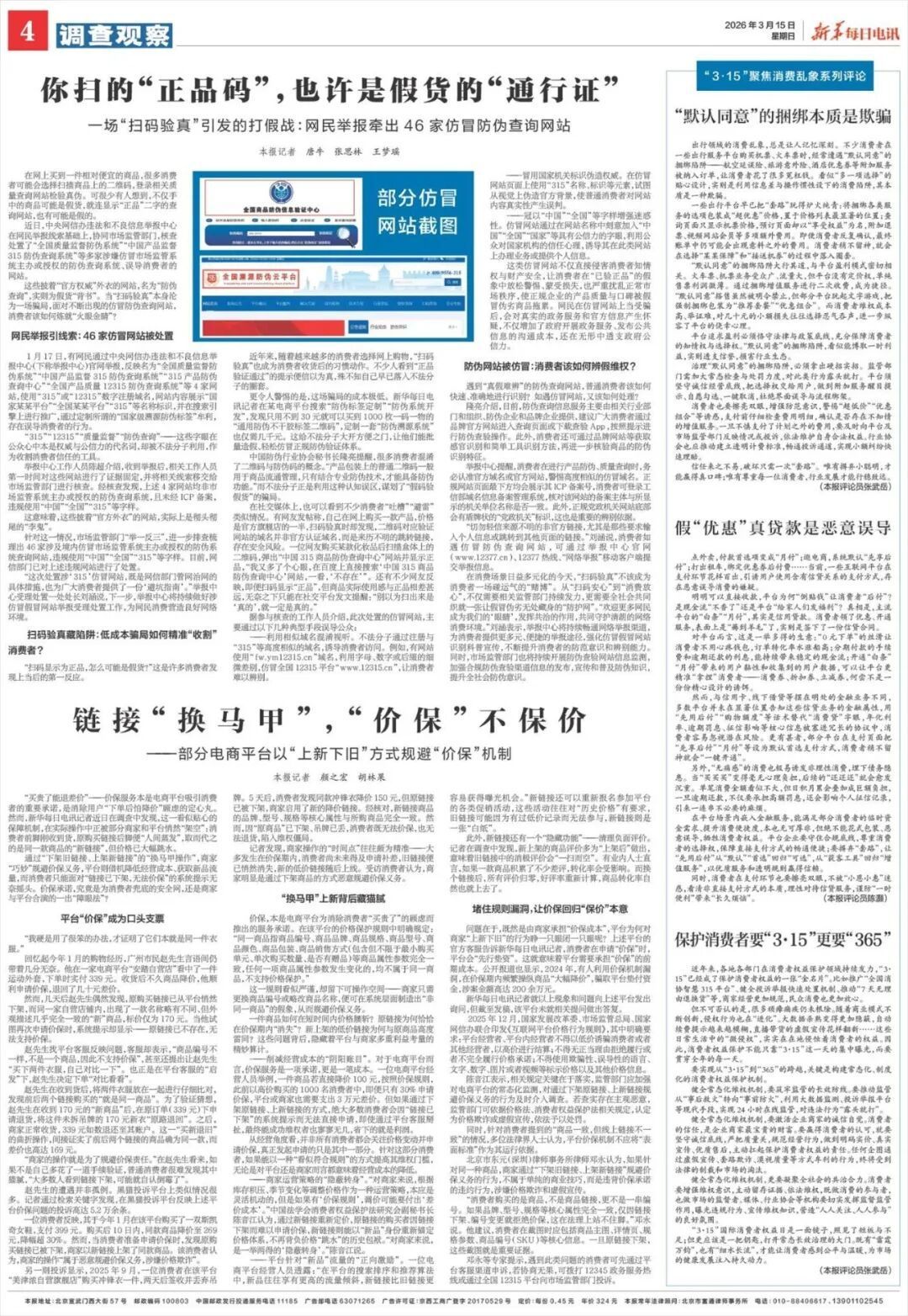 “这次处置涉‘315’仿冒网站,既是网信部门管网治网的具体措施,也为广大消费者提供了一份‘避坑指南’。”举报中心受理处置一处处长刘涵说,下一步,举报中心将持续做好涉仿冒假冒网站举报受理处置工作,为网民消费营造良好网络环境。