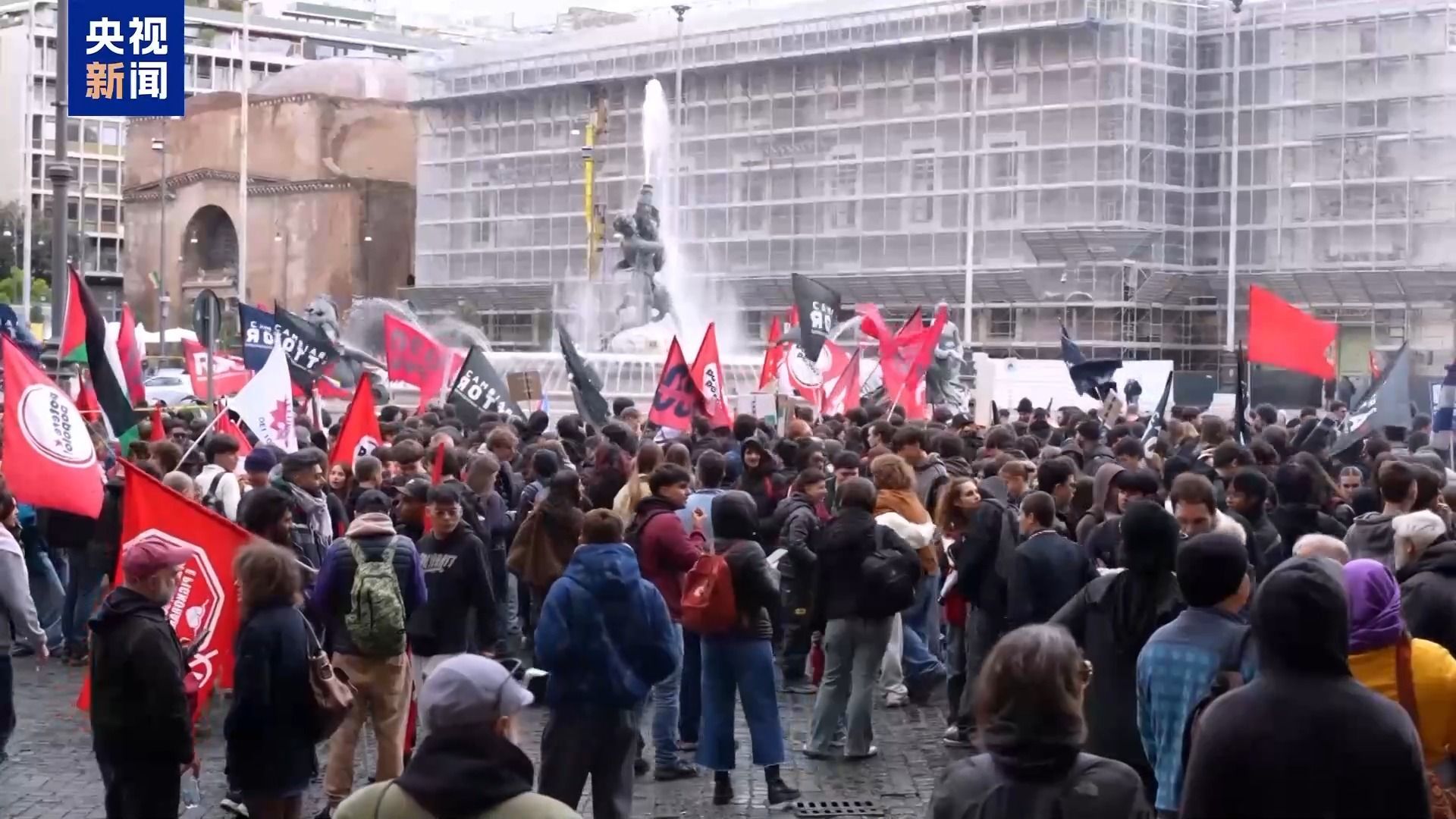 意大利罗马民众举行游行 反对美以把世界拖入战争