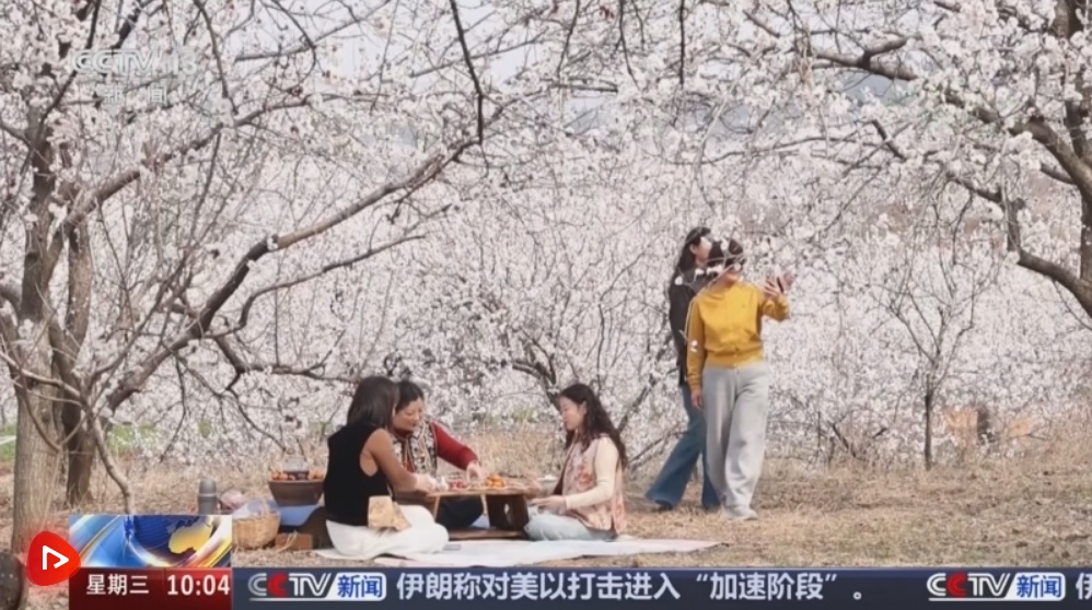 山东枣庄:千亩杏林花正盛 携手共赴春之约