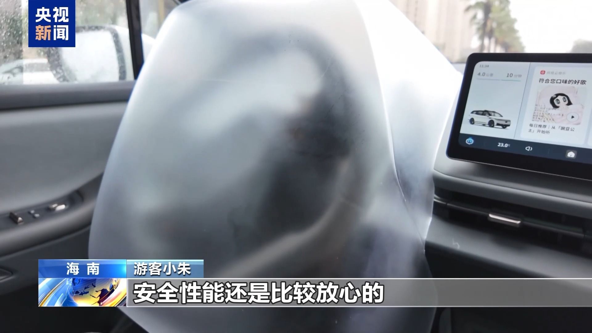 游客 小朱:我这次来海南旅游,就是想看一下海南的自然风光,自动驾驶我觉得也是比较新颖的一种出行方式。