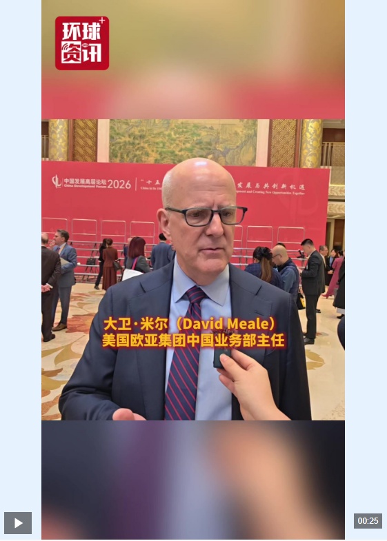 3月22日,在北京出席中国发展高层论坛2026年年会的美国欧亚集团中国业务部主任大卫·米尔接受总台环球资讯记者专访,他赞赏中国为促进全球稳定做出的努力,并表示中美近期在巴黎举行的经贸磋商具有建设性。