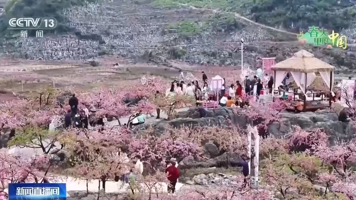 近年来,当地党员群众撬石凿岩、填土栽苗,在石头缝里种下耐旱喜光的桃树。种植规模从最初的2000多亩,发展到如今的一万余亩,涵盖黄桃、油桃等20多个品种,并同步打造出“春天赏花、夏秋采果”的全新业态,村民们纷纷吃上了旅游饭。