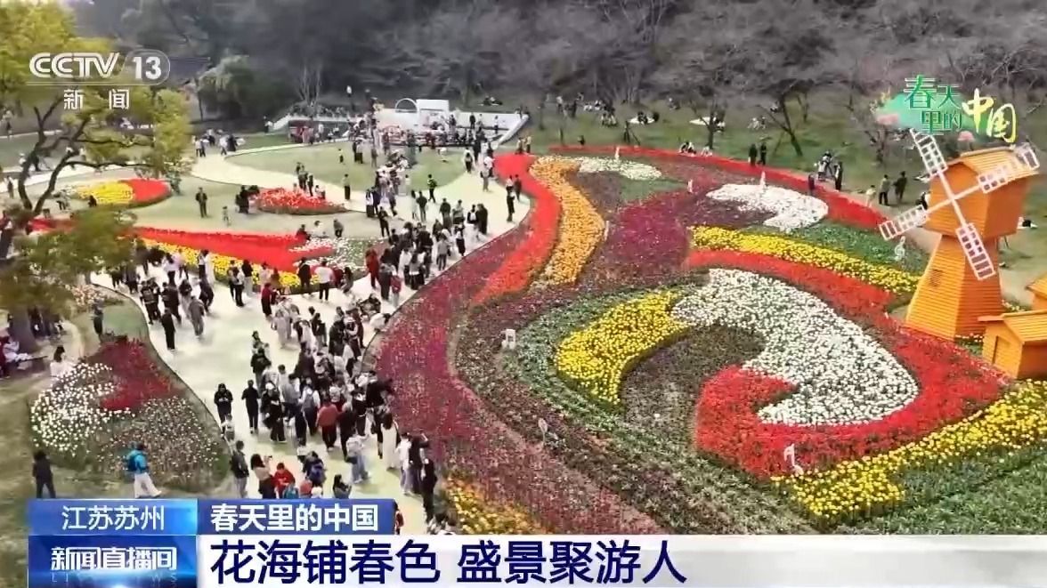 春日花开正好,在江苏苏州,当地依托江南园林与山野景致,打造多维主题花海,吸引众多游客。