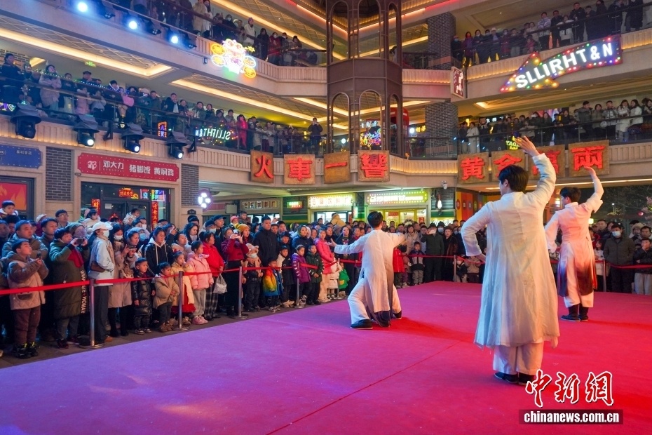 图为中铁·泰和里“唐宋梦华”主题街区上演国风演绎剧目吸引众多游客观赏。