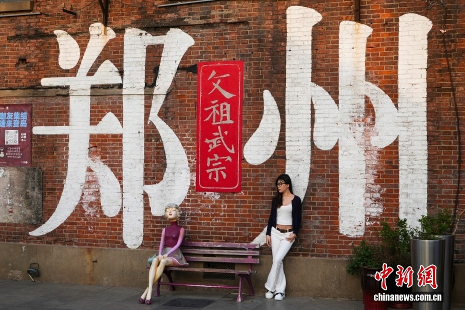 郑州记忆1952油化厂创意园高耸的红砖烟囱上,“郑州记忆”四个大字引人注目。兴建于1952年的郑州油脂化学厂曾是河南最大的洗涤用品生产基地。图为一名游客在郑州记忆1952油化厂创意园里拍照。