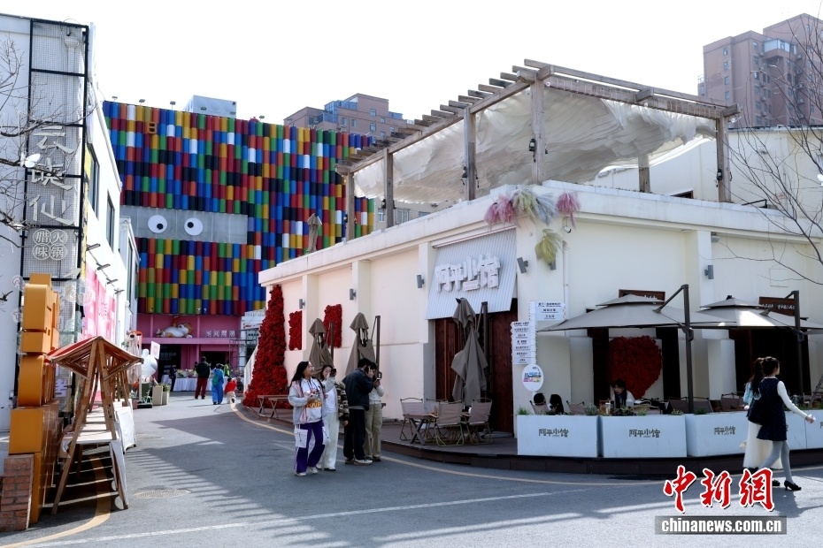 郑州二七米房前身是20世纪80年代初建成的王胡砦面粉厂,1992年更名为二七区第一面粉厂,2004年合并为郑州0143粮食储备库,主要承担二七区2.8万吨的地方储备粮任务。其改造依托原有粮仓建筑,保留大片裸露红墙、石碾、磨盘等历史印记,以“门、庭、巷、院”为格局融入传统街巷庭院肌理,激发社交娱乐、潮尚体验、艺文生活等核心功能,让昔日的“物质粮仓”转变为年轻人周末“微度假”的热门地标。如今,每逢休息日,年轻家庭在此度假,短剧剧组偶尔在此取景,成为城市更新的亮眼名片。图为民众在郑州二七米房休闲游玩。