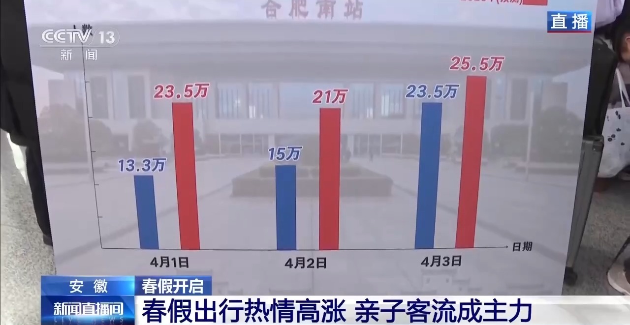 从数据上可以看出,今年春假期间,大家出行的热情非常高,预计1日到3日,整个合肥直属站发送的旅客人数将超过70万人次。