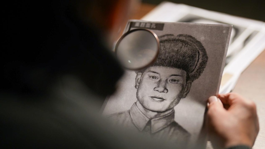2019年,耿秀兰找到了林宇辉。他仔细比对烈士的父亲与耿秀兰的相貌特征,结合走访细节,一笔一画、反复推敲,终于将烈士耿安祯的容颜重新呈现。