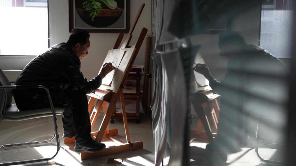 画室窗前,林宇辉久久伫立。洁白的雪花,给了他创作的灵感。一转身,他铺展开一张崭新的画纸。笔尖起落,很快,一双清澈的眼睛呈现面前。