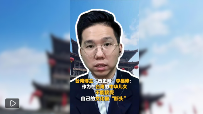 视频:台湾博主“历史哥”李易修:作为在台湾的中华儿女,不能接受自己的文化被“断头”