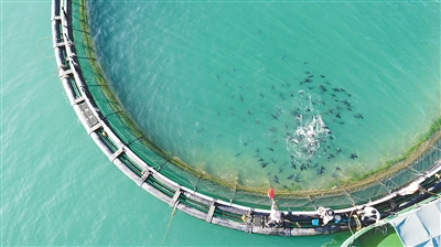 陵水黎族自治县清水湾地处热带,水温较高、水质清澈。距离岸线2.6公里外的海域上,多口网箱连成一片,适合喜温、喜活水的金鲳鱼生长。潘堃介绍,正是看上了这里的自然禀赋,以及同国内其他地区渔获丰收上市的时间差,2023年底,陵水农投开始投放种苗。