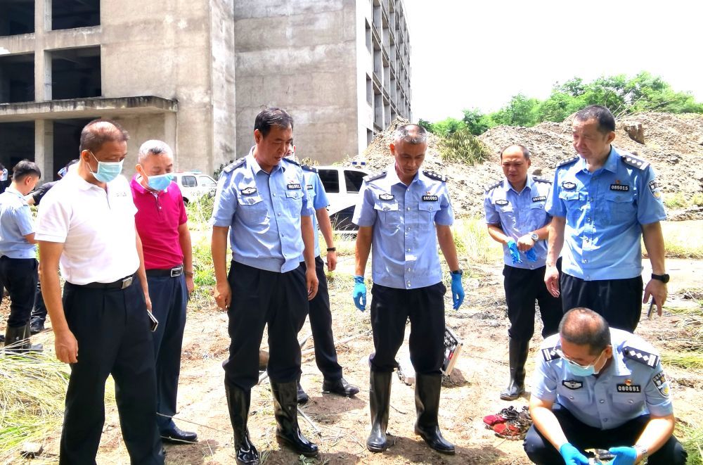 张学杰(前左三)指导现场勘查工作(2021年8月摄)。新华社发