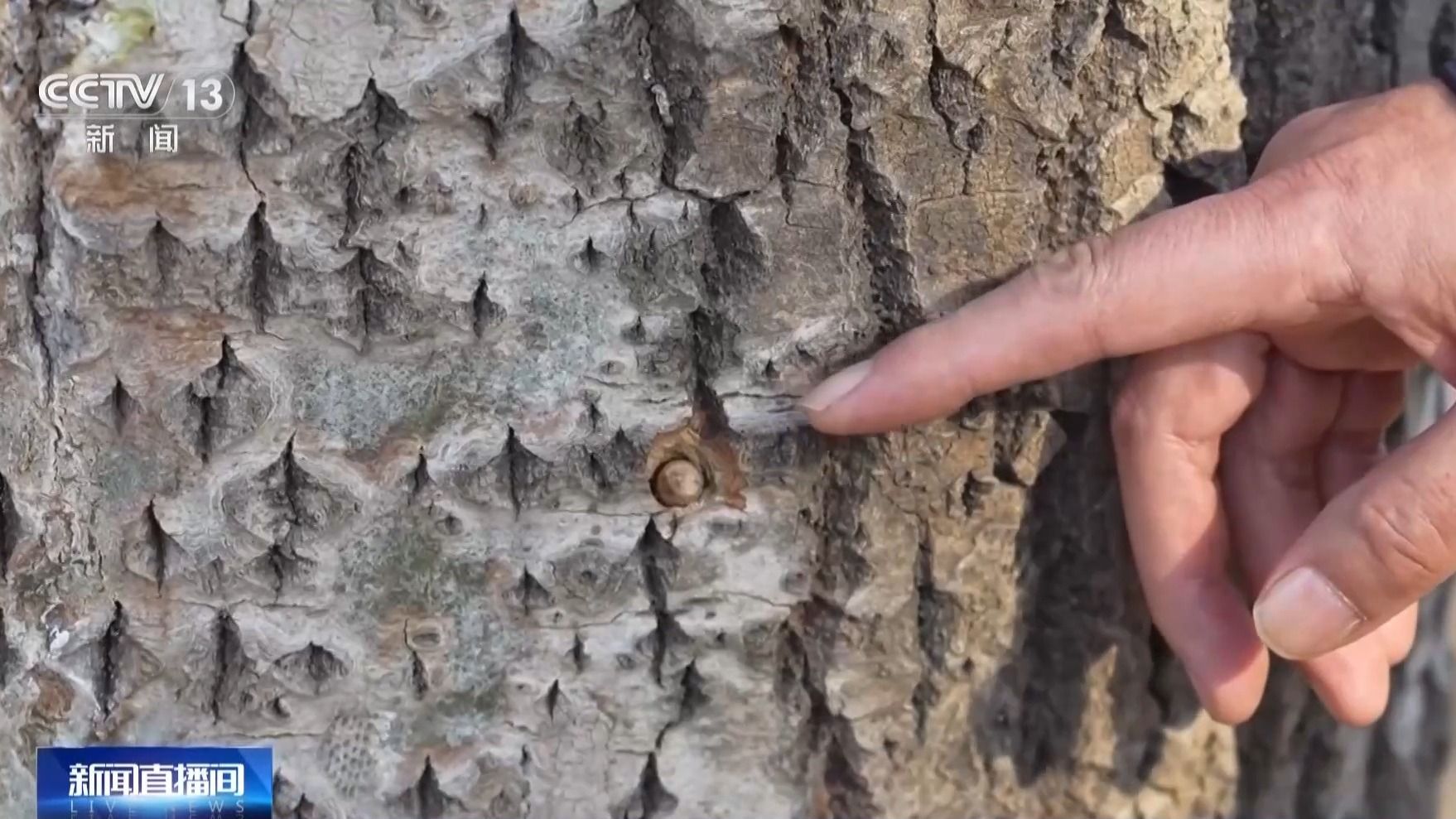 科研团队对雌性杨树、柳树进行药物干预,就是眼前的操作——在树干打上一个深8~10厘米左右的小孔,放入一两颗胶囊。胶囊看上去和人口服的胶囊非常相似,囊内是用纳米结构包裹的赤霉酸,这种从杨树中提取的物质,具有抑制雌株生长花序的功能,进而减少飞絮的产生。