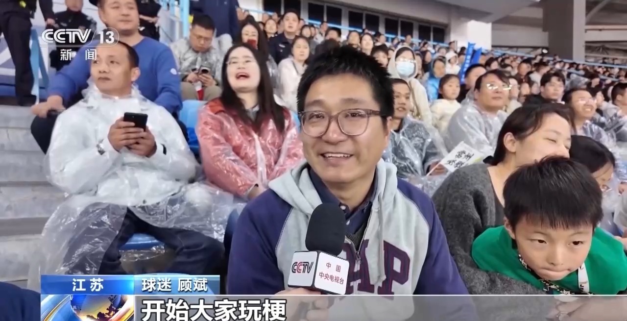 球迷 顾斌:我从上海过来,一开始并不知道苏超,看网上各种短视频平台大家玩梗,玩到后面我就觉得,这个好像蛮有趣的。