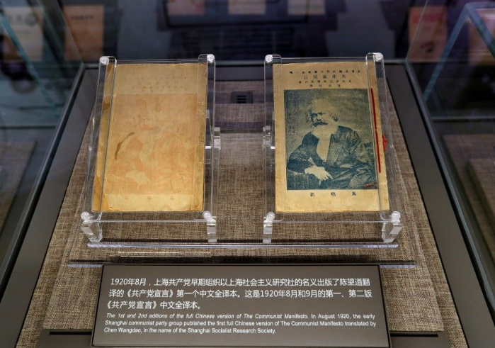 中共一大纪念馆展出的由陈望道翻译的《共产党宣言》第一个中文全译本(2021年6月1日摄)。新华社记者 刘颖 摄